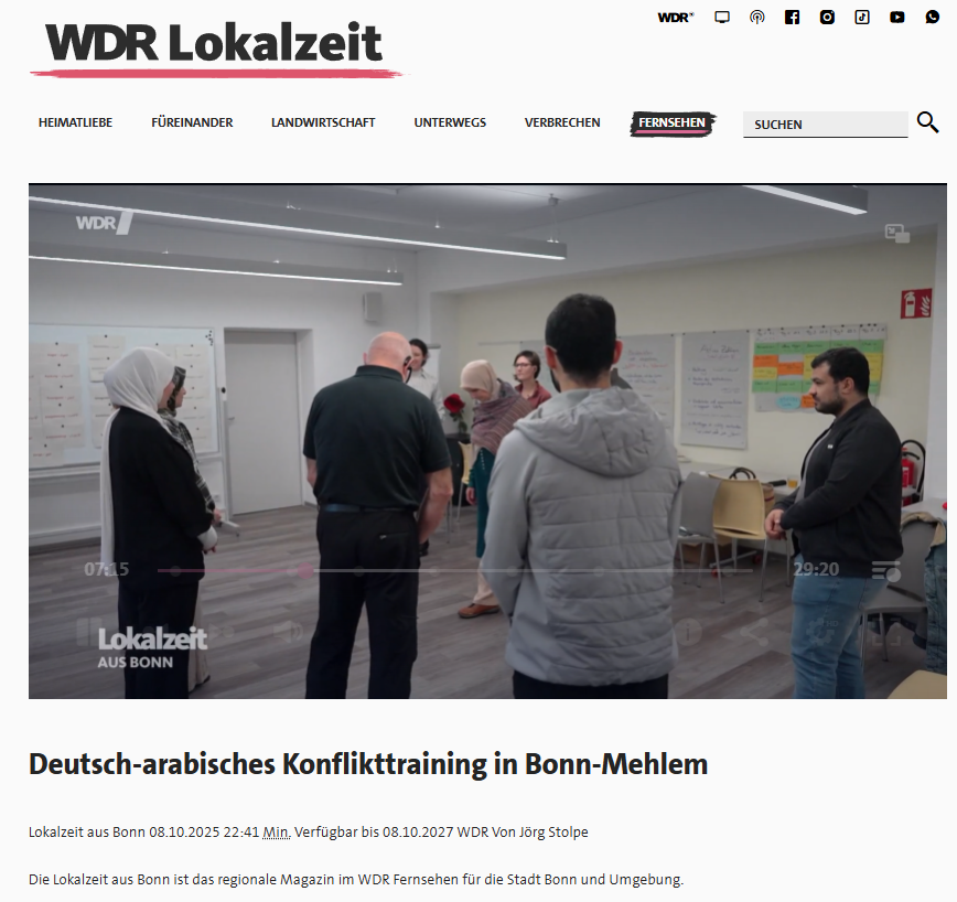 Dieses Seminar wurde vom WDR begleitet und der Beitrag kann hier angeschaut werden, ab Minute 6:38: https://www1.wdr.de/lokalzeit/fernsehen/bonn/deutsch-arabisches-konflikttraining-mehlem-100.html